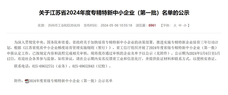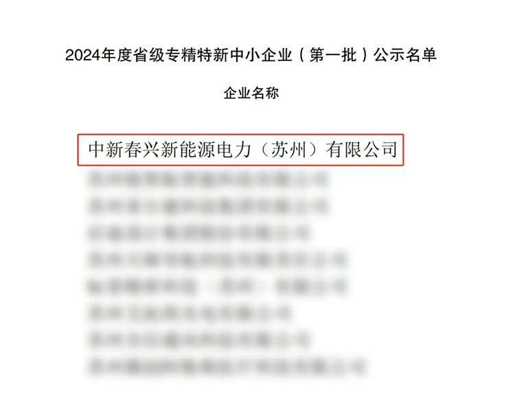 近日,蘇州市工業(yè)和信息化局公布了江蘇省2024年度專(zhuān)精特新中小企業(yè)(第一批)名單,中新綠發(fā)子公司中新春興新能源電力(蘇州)有限公司(簡(jiǎn)稱(chēng)“中新春興”)憑借在專(zhuān)業(yè)化、新穎化、精細(xì)化、特色化等多方面的優(yōu)勢(shì),獲評(píng)江蘇省“專(zhuān)精特新”中小企業(yè)。