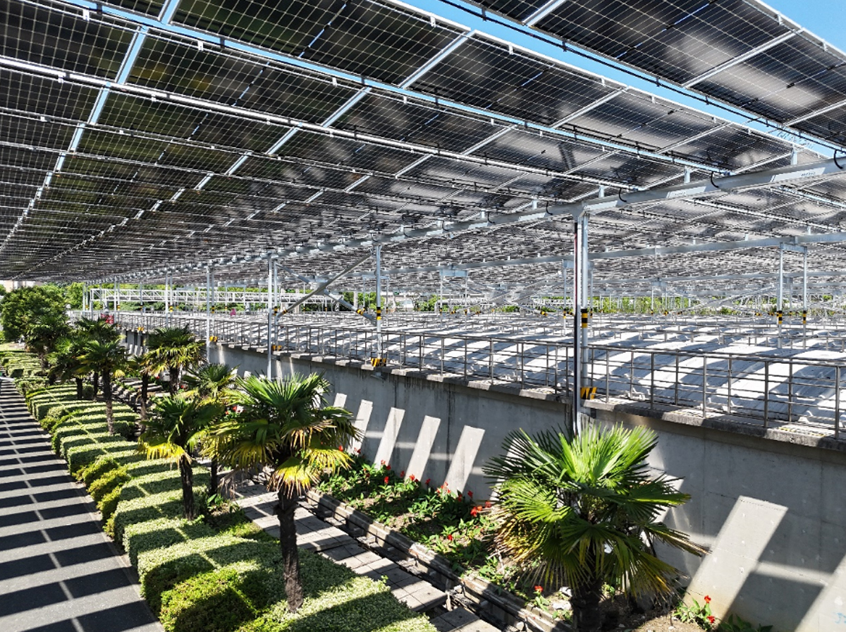 污水處理廠水池跨徑大、管線多、障礙物高,一直是光伏行業的建設難題。經過周密調研、科學創新,采用“鋼結構+預應力鋼索”的新型支架形式,以模塊化架空安裝有效解決了技術與成本的兼容,保障電站穩定、可靠運營,同時不占用土地資源,不影響污水處理,并兼顧綠化植物生?,實現空間資源利用最大化。憑借獨特的應用場景和創新的解決方案,項目獲評2024第三屆中國(江蘇)新能源+儲能產業發展大會最佳新能源應用案例獎。