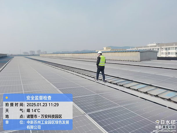項(xiàng)目點(diǎn)多、面廣是分布式光伏發(fā)電行業(yè)的特點(diǎn),中新綠發(fā)將綠色發(fā)電業(yè)務(wù)板塊的光伏電站建設(shè)、運(yùn)營(yíng)作為檢查重點(diǎn)。在中新綠能開展安全自檢、抽檢和互檢的基礎(chǔ)上,中新綠發(fā)、中新綠能安全監(jiān)管條線聯(lián)合抽檢了江蘇、浙江等多地的光伏電站,推進(jìn)落實(shí)隱患整改,確保電站安全運(yùn)營(yíng)。冬季以來,中新綠能還組織專業(yè)人員對(duì)山東、河南、河北、安徽等冬季下雪量較大區(qū)域的28個(gè)電站開展了屋頂結(jié)構(gòu)安全隱患排查,防患未然。
