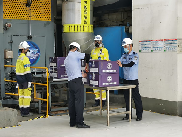 中新蘇伊士一直高度重視企業社會責任的履行,用專業能力為政府、社會提供特殊處置服務。2021年,中新蘇伊士成功完成全國首創的“關證一鏈通”保稅貨物銷毀,為園區企業提供了定制化的高質量解決方案;2022年國際禁毒日,配合公安部門完成大規模毒品集中銷毀任務。2025年,配合市場監管部門完成全國侵權偽劣商品統一銷毀(蘇州分會場)任務,安全處置約68噸假冒偽劣商品。