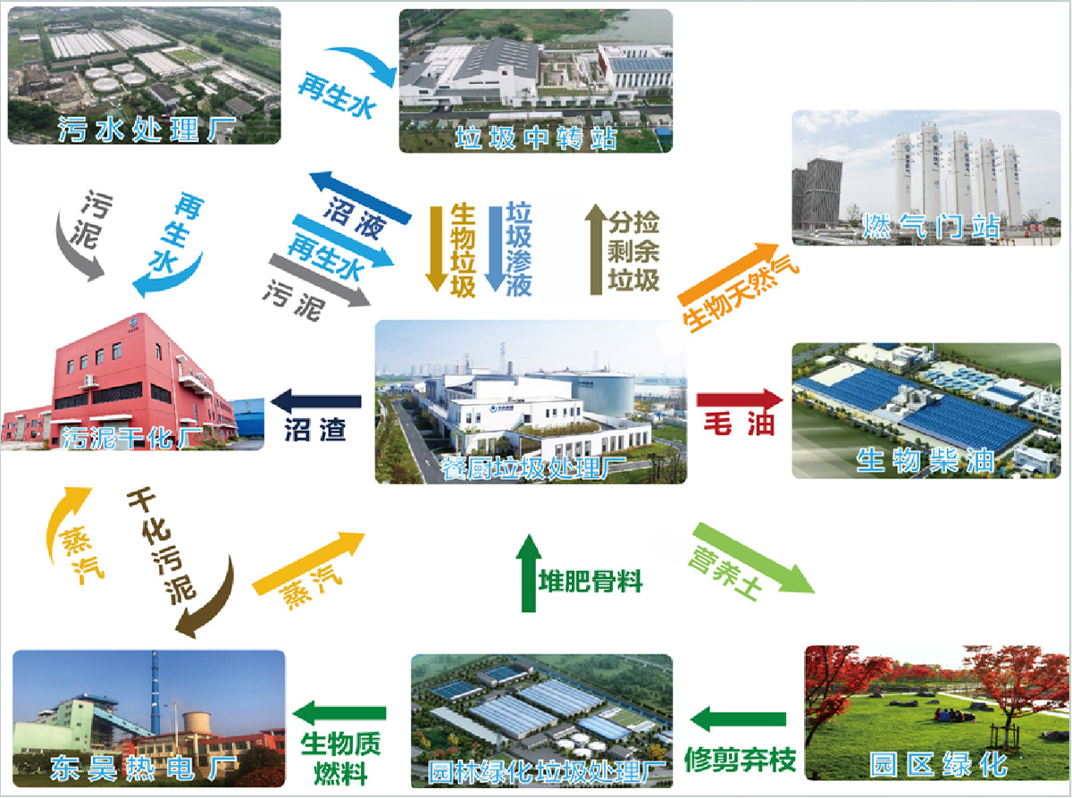 循環(huán)經(jīng)濟(jì)產(chǎn)業(yè)園位于園區(qū)東南,臨近吳淞江,占地約728畝,總投資約27億元。從2004年至今,循環(huán)經(jīng)濟(jì)產(chǎn)業(yè)園內(nèi)建成污水處理廠、污泥處置廠、有機(jī)廢棄物(餐廚及廚余垃圾)利用廠、有機(jī)廢棄物(綠化垃圾)利用廠、垃圾中轉(zhuǎn)站、熱電廠、天然氣接收站等七個(gè)基礎(chǔ)設(shè)施,以“產(chǎn)業(yè)協(xié)同、循環(huán)利用、綠色低碳”為理念,創(chuàng)新構(gòu)建了以“污水處理——污泥處置/有機(jī)廢棄物處理——熱電聯(lián)產(chǎn)/生物天然氣利用”為核心,各設(shè)施有機(jī)互聯(lián),互為能量和原料提供者、互為廢棄物處理者的循環(huán)經(jīng)濟(jì)產(chǎn)業(yè)鏈,助力“無廢園區(qū)”建設(shè);積極實(shí)施綠色低碳項(xiàng)目,建設(shè)近零碳基礎(chǔ)設(shè)施,助力國家首批碳達(dá)峰試點(diǎn)園區(qū)目標(biāo)的實(shí)現(xiàn)。